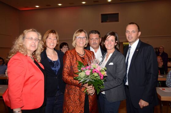 In ihrer Bewerbungsrede erläuterte Rosemarie Lück die Bandbreite des Sozialbereichs im Landkreis Darmstadt-Dieburg. Der Bericht zur sozialen Lage, der Aufbau von Ganztagsschulangeboten und Maßnahmen für die Vereinbarkeit von Familie und Beruf waren die Schwerpunkte ihrer Arbeit. Aktuell ist die Unterbringung und Betreuung der Flüchtlinge die größte Herausforderung und verlangt von allen Beteiligten eine Kraftanstrengung. Diesen Aspekt griffen auch die Vorsitzende der SPD-Kreistagsfraktion, Christel Sprößler, und die Kreistagsvorsitzende, Dagmar Wucherpfennig, in der Aussprache auf und lobten das vorbildliche Engagement von Rosemarie Lück in diesem Bereich. Auch die Delegierten des Parteitags nahmen sich dieses Themas an und sammelten 551 Euro für die Arbeit des Asylkreises Dieburg.
